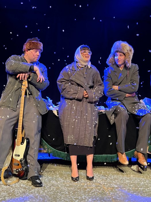 В спектакле заняты актеры: Алина Вакаева, Наталья Палагушкина, Олег Сапиро, Арра Лобоцкая, Кирилл Кусков, Стас Кардашев, Максим Наумов, Иван Выборнов. А также музыканты Максим Разумец и Римма Латышева.