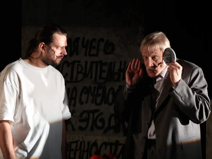 «Наверно, среди моих коллег нет тех, у кого сложился бы подобный театральный эпизод в жизни. Судьба позволила мне второй раз оживить спектакль. Впервые я играл его в РАМТе, а спустя несколько лет вернулся к уже в Театре Маяковского. Здесь все по-новому: другие ритмы, взаимоотношения. Это огромный спектакль по наполнению — смыслами, идеями, образами, и я счастлив быть здесь!»